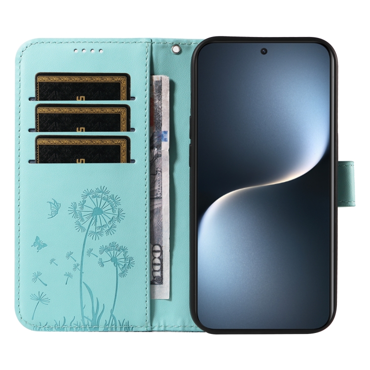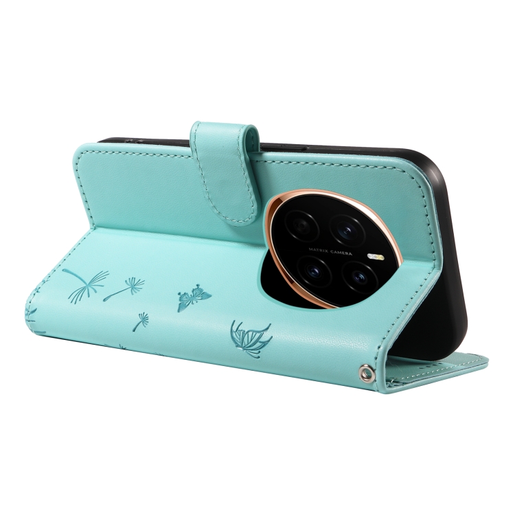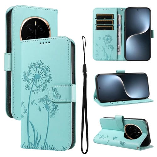 Funda de Cuero con Tapa y Estampado Diente de León para Honor Magic7 5G (Verde)