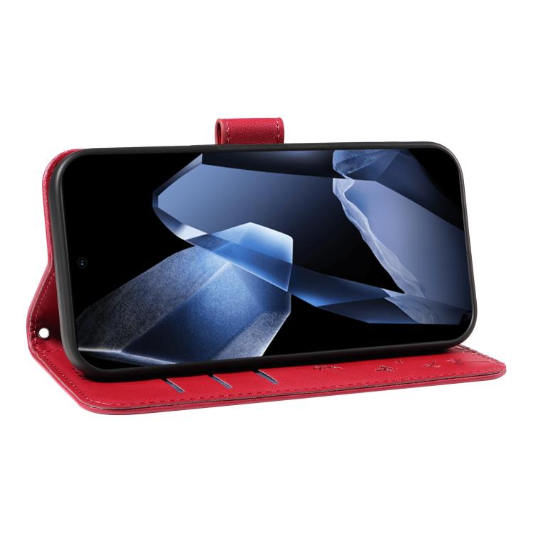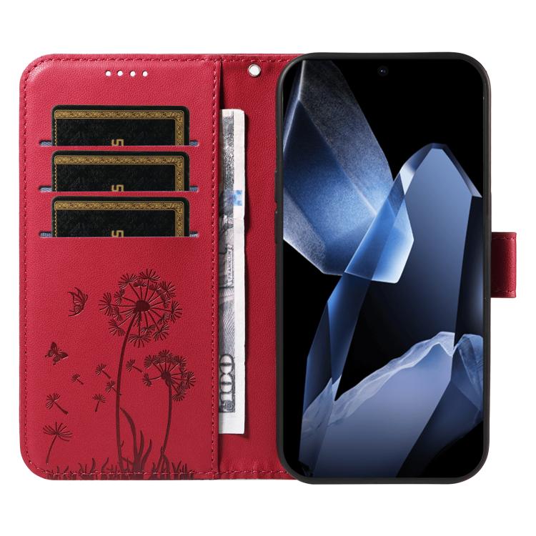 Funda de Cuero con Tapa para OnePlus 13 con Diseño de Diente de León en Relieve (Rojo)
