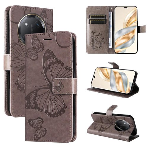 Funda de Cuero con Tapa y Mariposa en Relieve 3D para Honor X9C 5G Global (Gris)