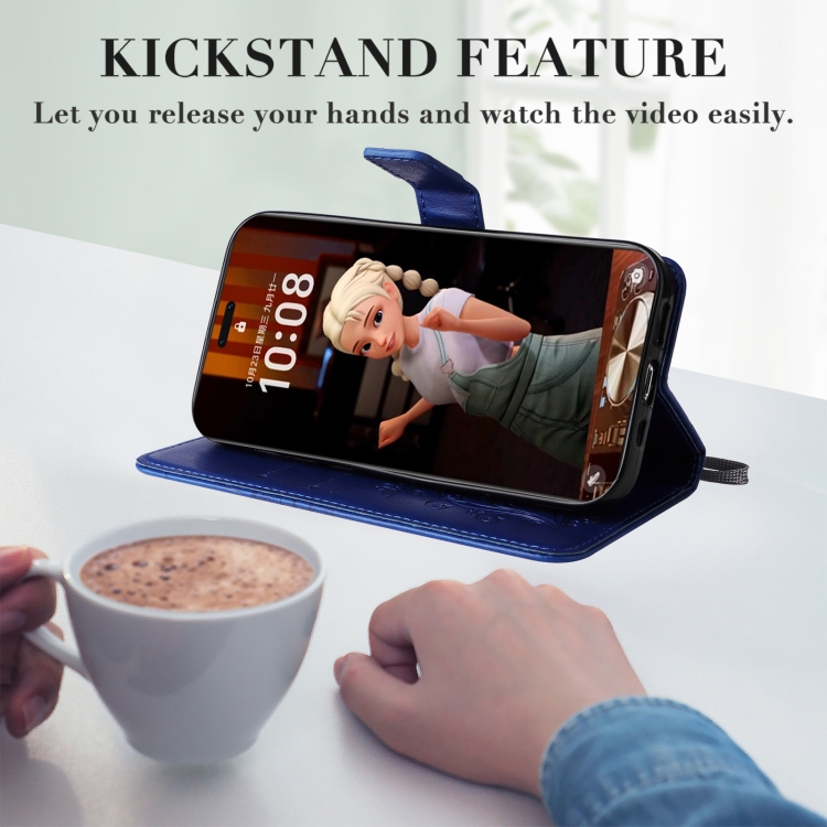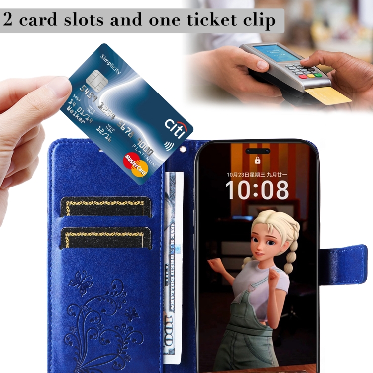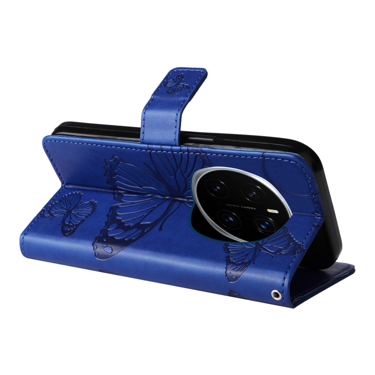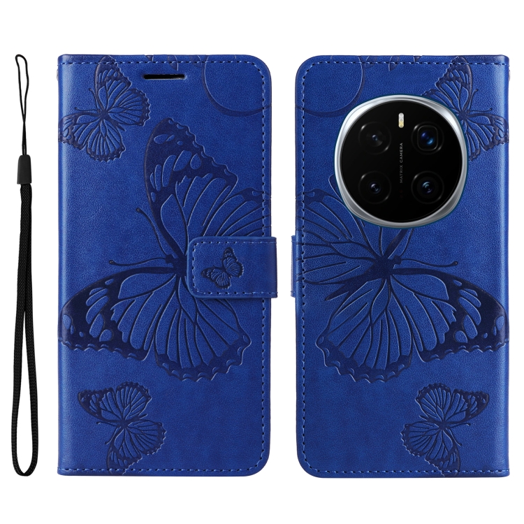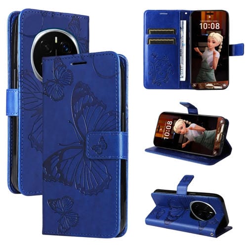 Funda de Cuero con Tapa y Mariposa en Relieve 3D para Honor Magic7 Pro (Azul)