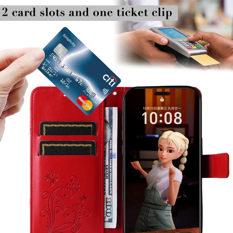 Funda de Cuero con Tapa y Mariposa 3D para Honor Magic7 Pro (Rojo)