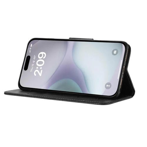 Funda de cuero con tapa y diseño de mariposa para iPhone 17 (negra)