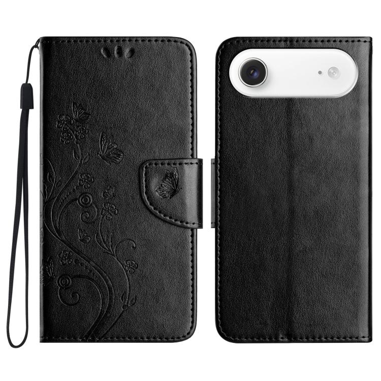Funda de cuero con tapa y diseño de mariposas y flores para iPhone Air (negra)