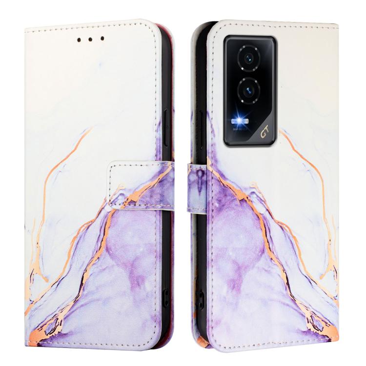 Funda de Cuero con Tapa y Diseño de Mármol para Honor Gt Pt003 (Blanco y Morado)