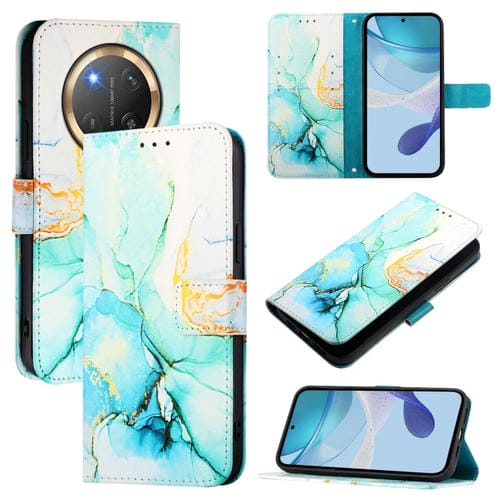 Funda de Cuero con Tapa y Diseño de Mármol para Honor X9C 5G Pt003 (Verde)