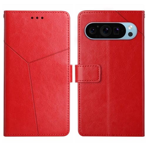 Funda de Cuero con Tapa y Patrón en Forma de Y para Google Pixel 9 Pro XL (Rojo)