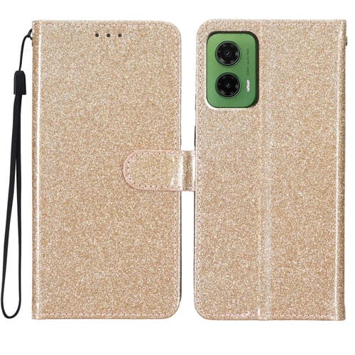 Funda de Cuero con Tapa y Purpurina para Motorola Moto G35 (Dorada)
