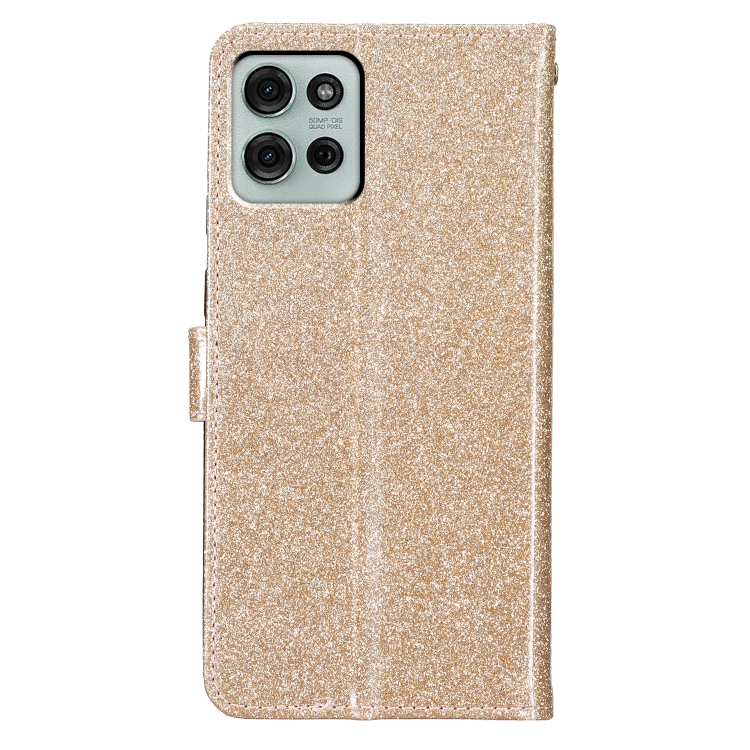 Funda de Cuero con Tapa y Purpurina para Motorola Moto G75 5G (Dorada)