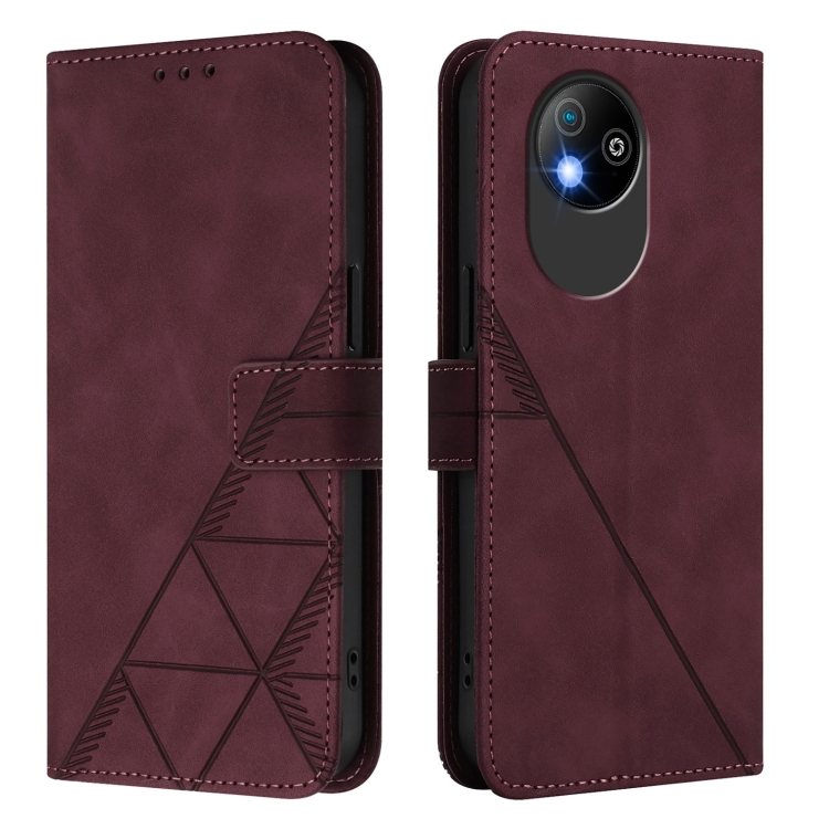 Funda de Cuero con Tapa y Relieve 3D para ZTE Blade A35 Lite/A35 Core (Rojo Vino)