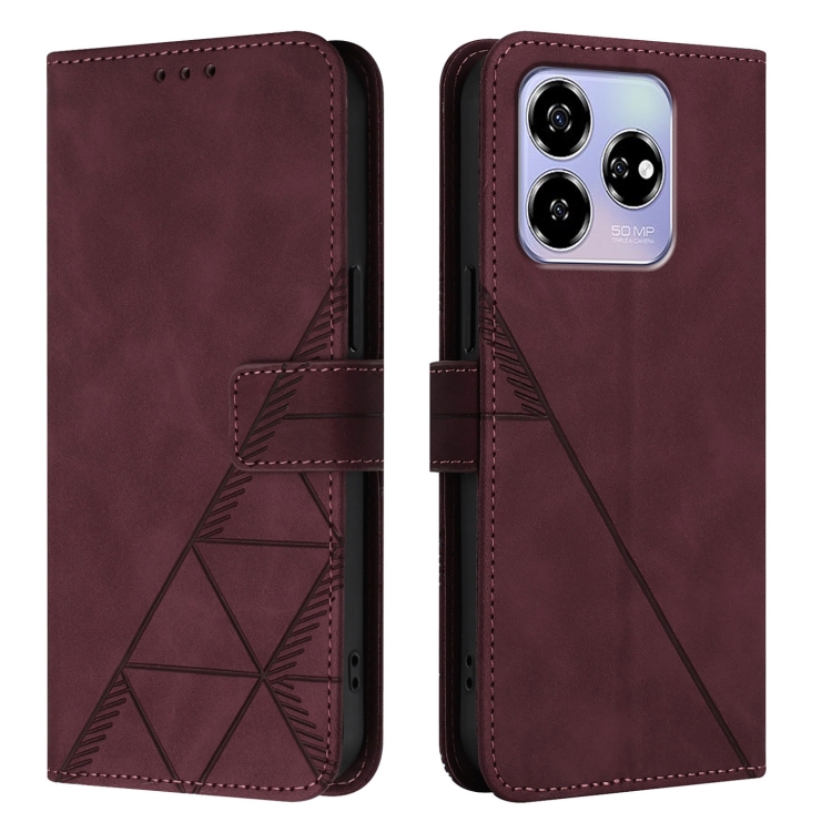 Funda de Cuero con Tapa y Relieve 3D para ZTE Blade V60/Axon 60 4G (Rojo Vino)