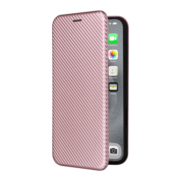Funda de Cuero con Tapa y Textura de Fibra de Carbono para iPhone 16 Pro Max (Rosa)