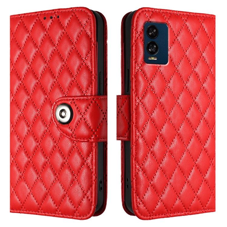 Funda de Cuero con Tapa y Textura Rombal para Blu View Speed 5G con Cordón (Rojo)