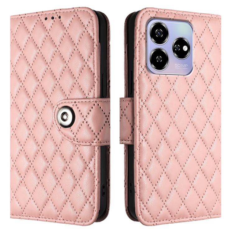 Funda de Cuero con Tapa y Textura Rombal para ZTE Blade V60/Axon 60 4G con Cordón (Rosa Coral)