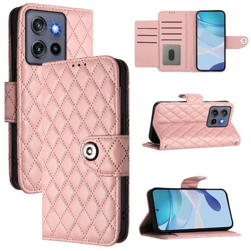 Funda de Cuero con Tapa y Textura Rómbica para Motorola Moto G Stylus 5G (2025) con Cordón (Rosa Coral)