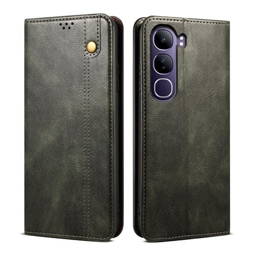 Funda de Cuero con Textura Crazy Horse y Cera de Aceite para Vivo V40 Lite 4G Idn/5G Idn (Verde)