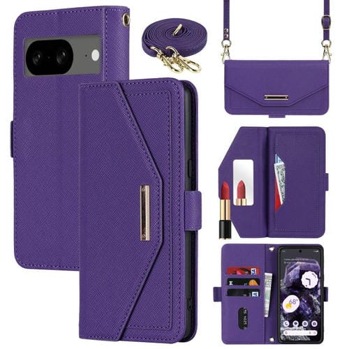 Funda de Cuero con Textura Cruzada y Cordón para Google Pixel 8 (Morado)
