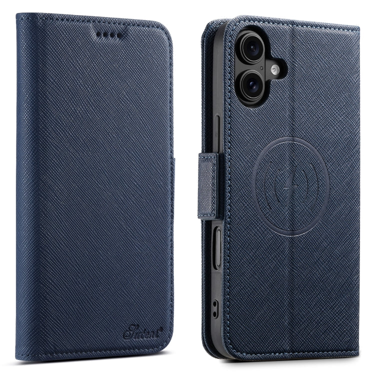Funda de Cuero Suteni J08 con Textura Cruzada y Soporte Magsafe para iPhone 16 (Azul)