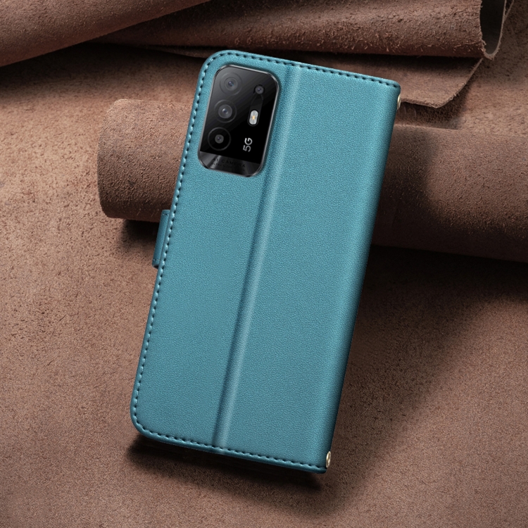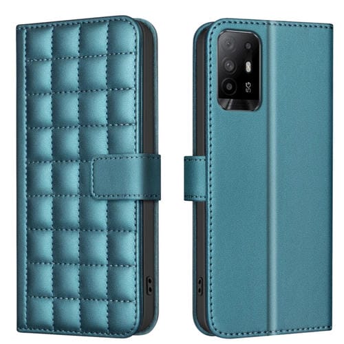 Funda de Cuero con Textura Cuadrada para Oppo A94 5G / Reno5 Z / F19 Pro+ (Verde)