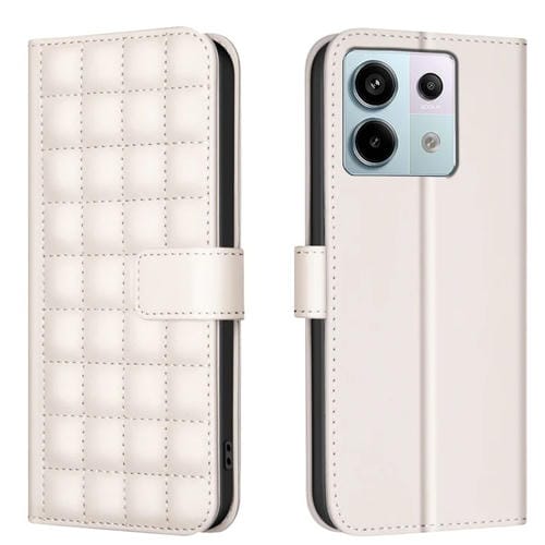 Funda de Cuero con Textura Cuadrada para Redmi Note 13 Pro 5G (Beige)