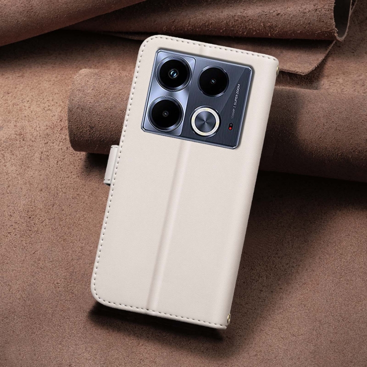 Funda de Cuero con Textura Cuadrada para Teléfono Infinix Note 40 4G (Beige)