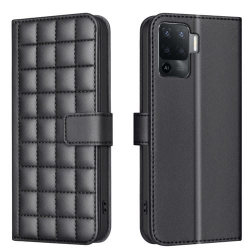 Funda de Cuero con Textura Cuadrada para Teléfono Oppo A94 4G / Reno5 F / F19 Pro (Negra)