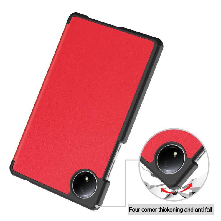 Funda de cuero con textura Custer de 3 pliegues para Xiaomi Redmi Pad SE 8.7 (roja)