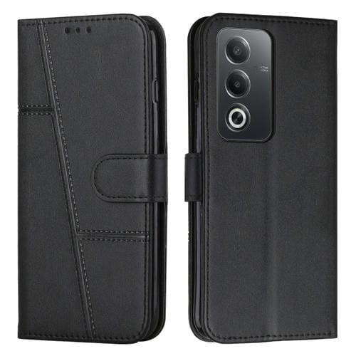 Funda de Cuero con Textura de Becerro y Costura para Teléfono Oppo A3 Pro (Negro)