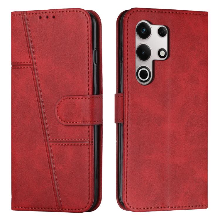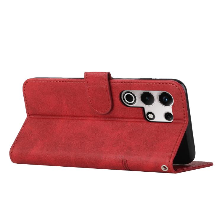 Funda de Cuero Textura Becerro con Costuras y Hebilla para Itel S25 Ultra (Rojo)