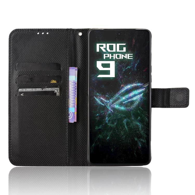 Funda de Cuero con Textura de Diamante para Asus Rog Phone 9 y 9 Pro (Negra)
