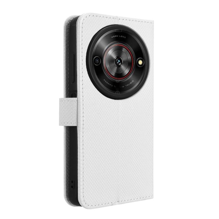 Funda de Cuero Textura de Diamante para ZTE Blade A75 5G (Blanca)