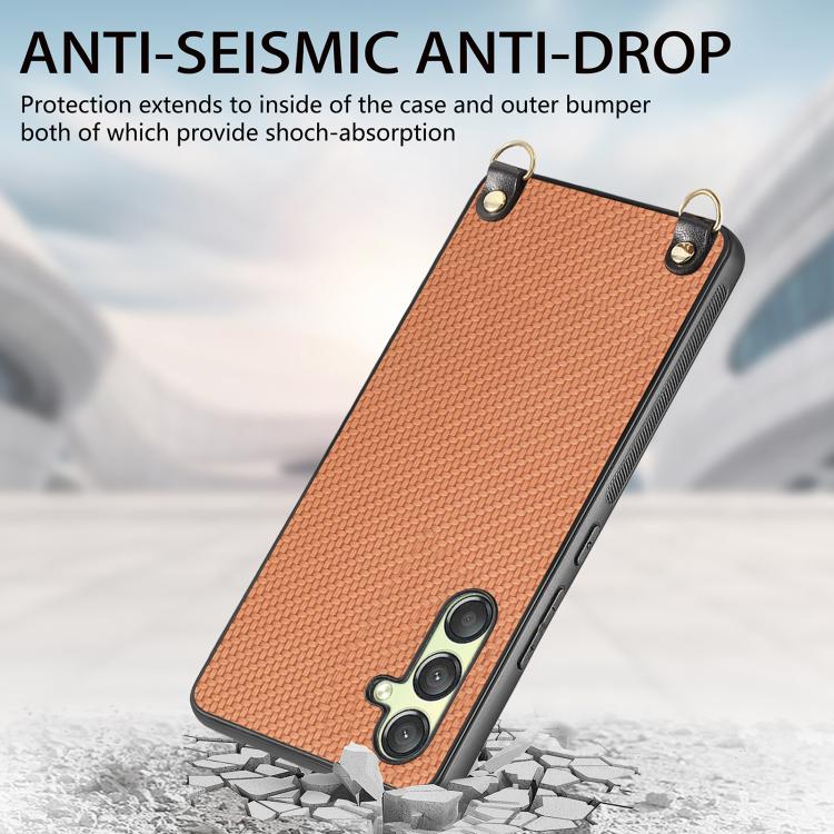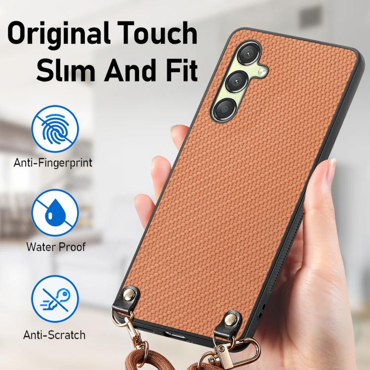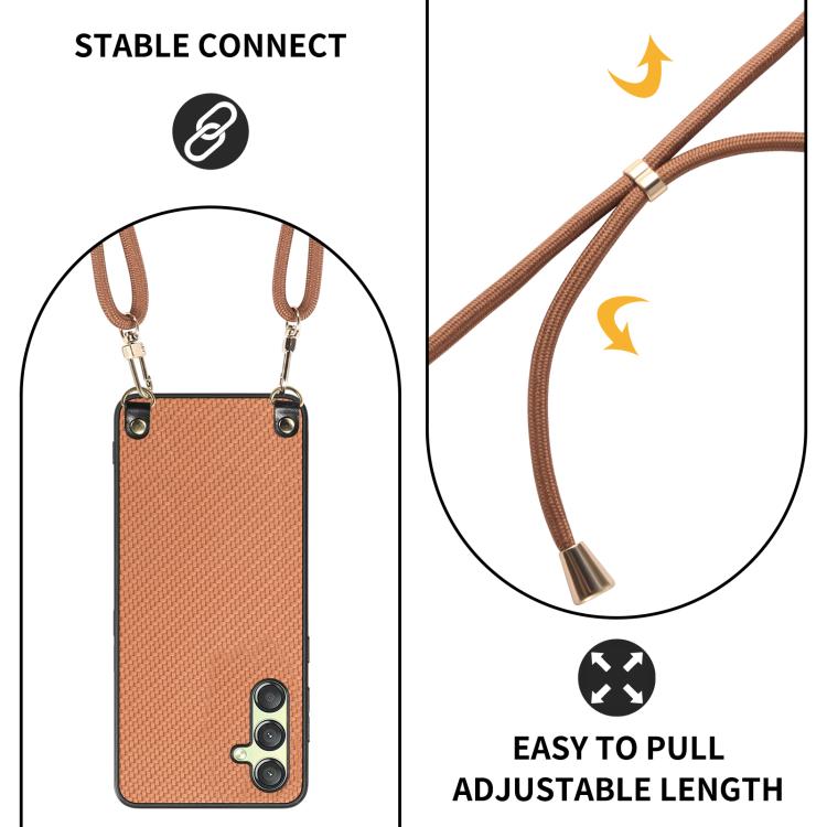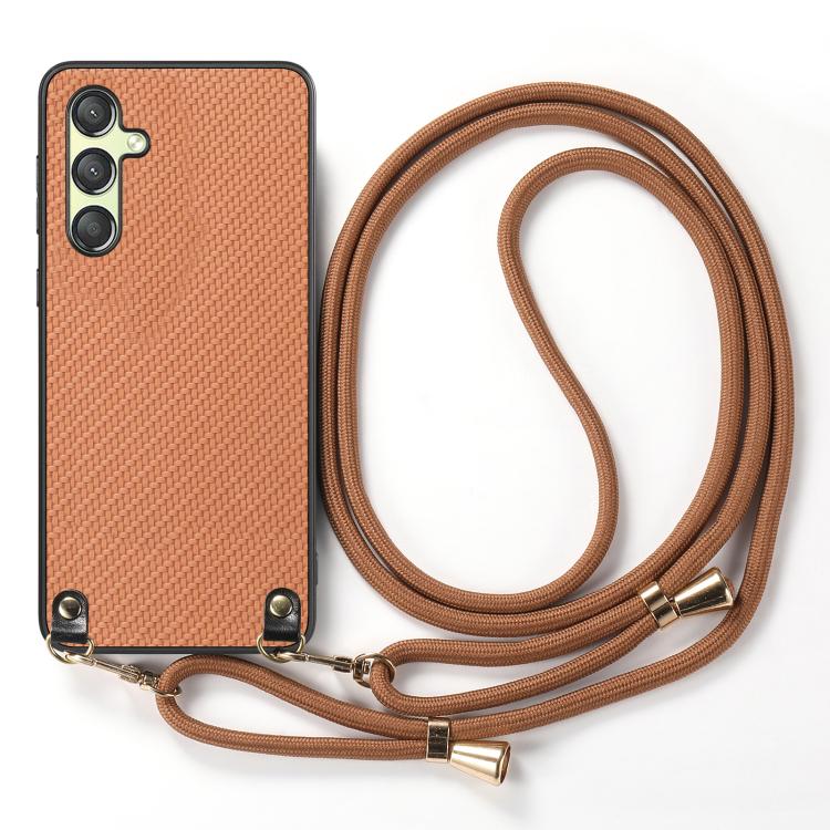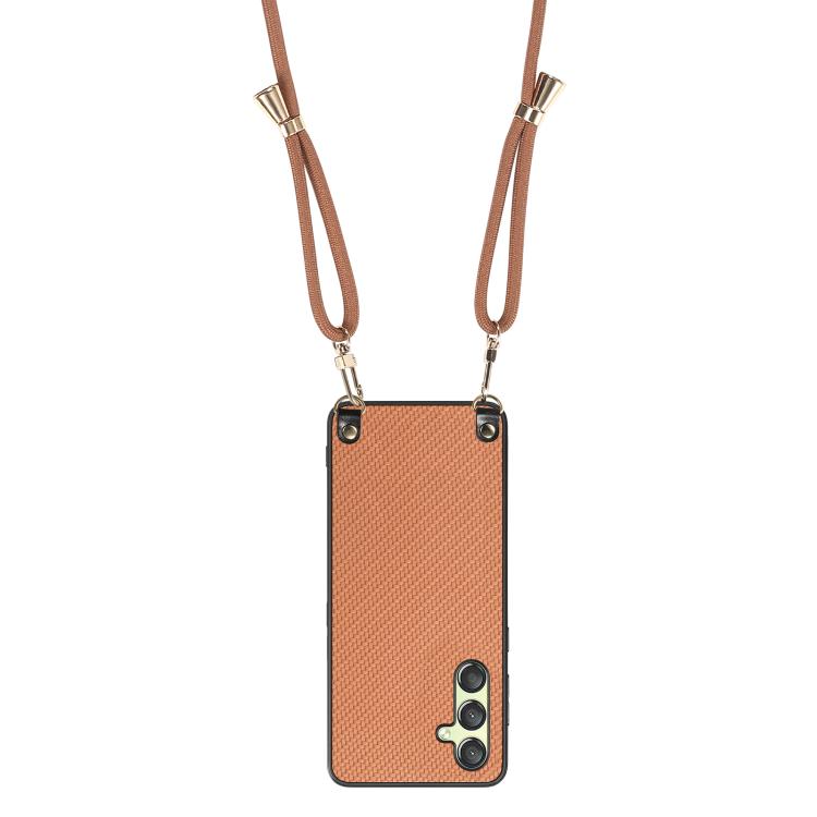 Funda de Cuero Samsung Galaxy A15 Textura Fibra de Carbono con Correa Cruzada (Marrón)