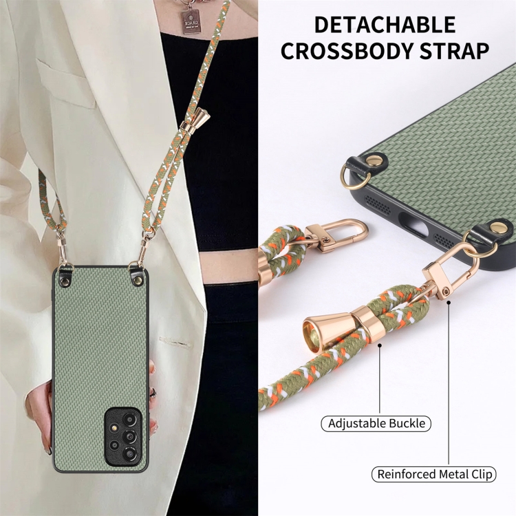 Funda Cuero Fibra de Carbono Samsung Galaxy A50/A50S con Correa Cruzada (Verde)