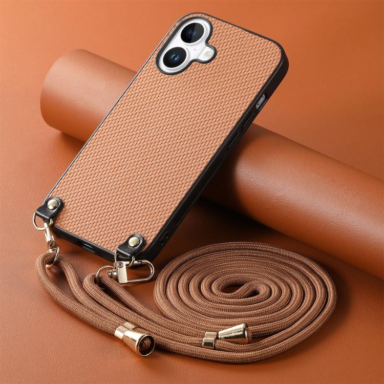 Funda de cuero con textura de fibra de carbono y correa cruzada para iPhone 17 (marrón)