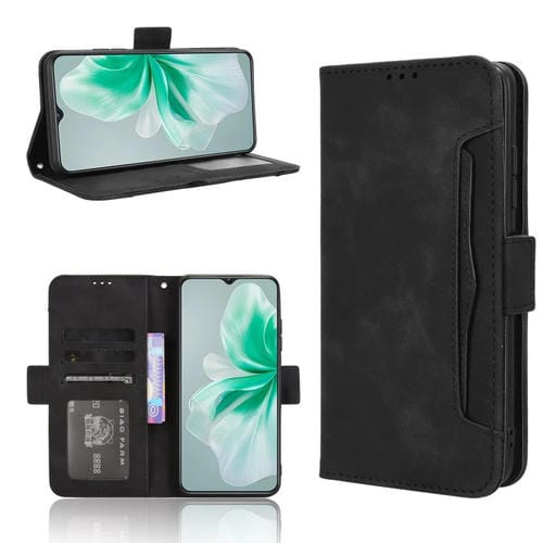 Funda de Cuero con Textura de Piel de Becerro y Ranuras para Tarjetas para Oukitel C38 (Negro)