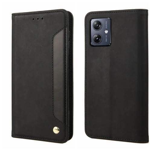 Funda de Cuero con Textura de Piel Sintética para Motorola Moto G35 (Negra)