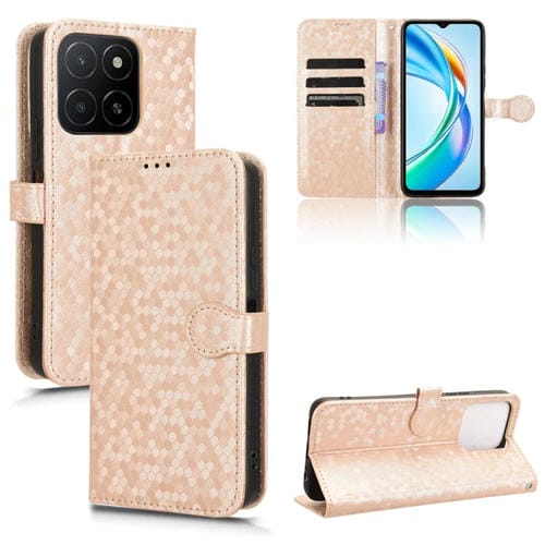 Funda de Cuero con Textura de Panal para Honor X5B 4G y X5B Plus 4G (Dorada)