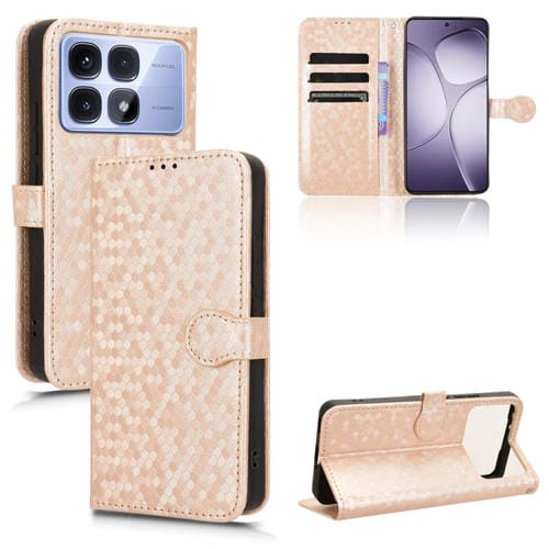 Funda de Cuero con Textura de Puntos En Forma de Panal para Redmi K70 Ultra (Dorada)