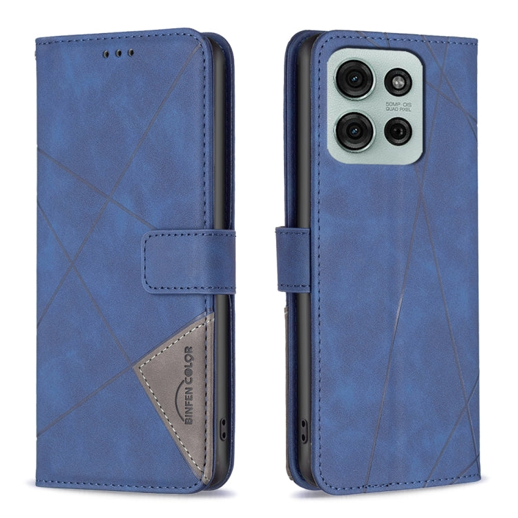 Funda de Cuero Motorola Moto G75 5G con Textura de Rombos y Hebilla Magnética (Azul)
