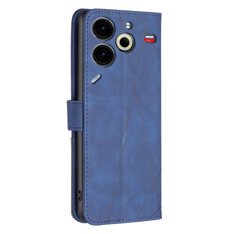 Funda de Cuero para Tecno Pova 6 Neo con Textura de Rombos y Hebilla Magnética (Azul)