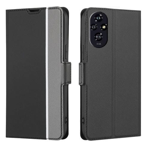 Funda de Cuero con Textura de Sarga y Botones Laterales para Honor 200 5G (Negra)