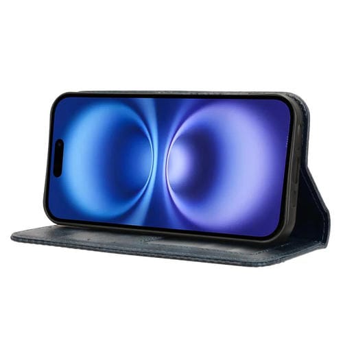 Funda de cuero con textura retro y hebilla magnética para iPhone 17 (azul)