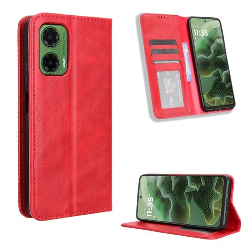 Funda de Cuero Motorola Moto G35 5G con Textura Retro y Hebilla Magnética (Roja)