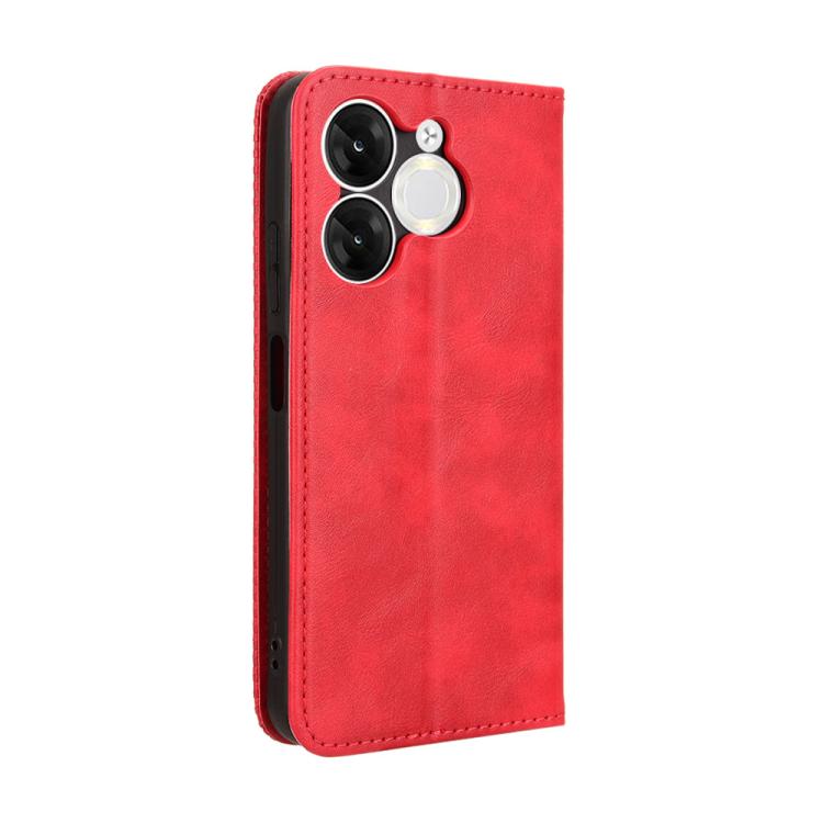 Funda de Cuero Itel A80 4G con Textura Retro y Hebilla Magnética (Rojo)