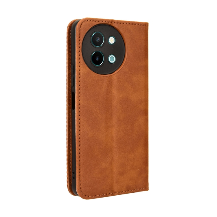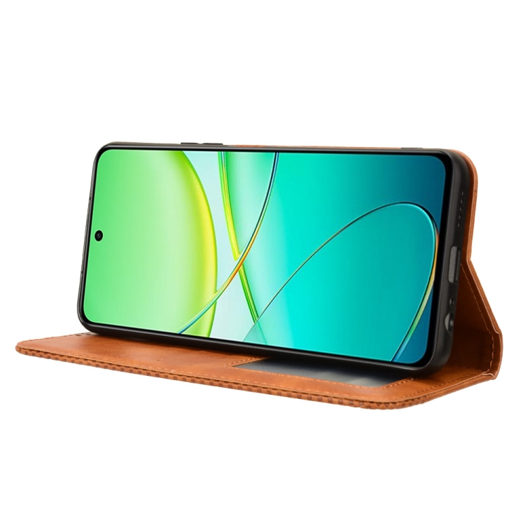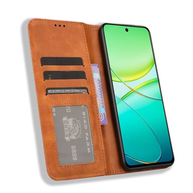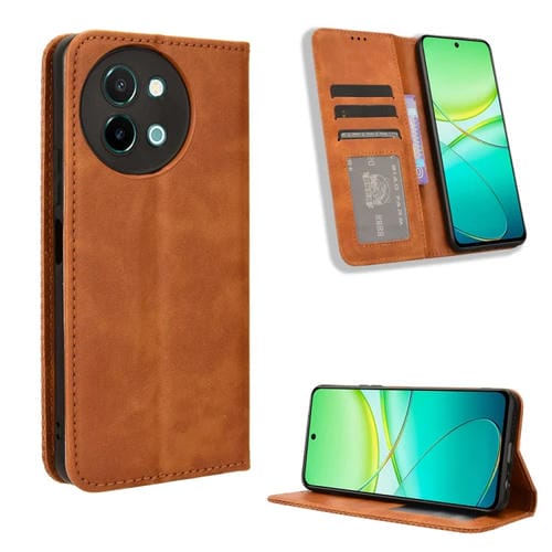 Funda de Cuero con Textura Retro y Hebilla Magnética para Vivo Y58 5G (Marrón)