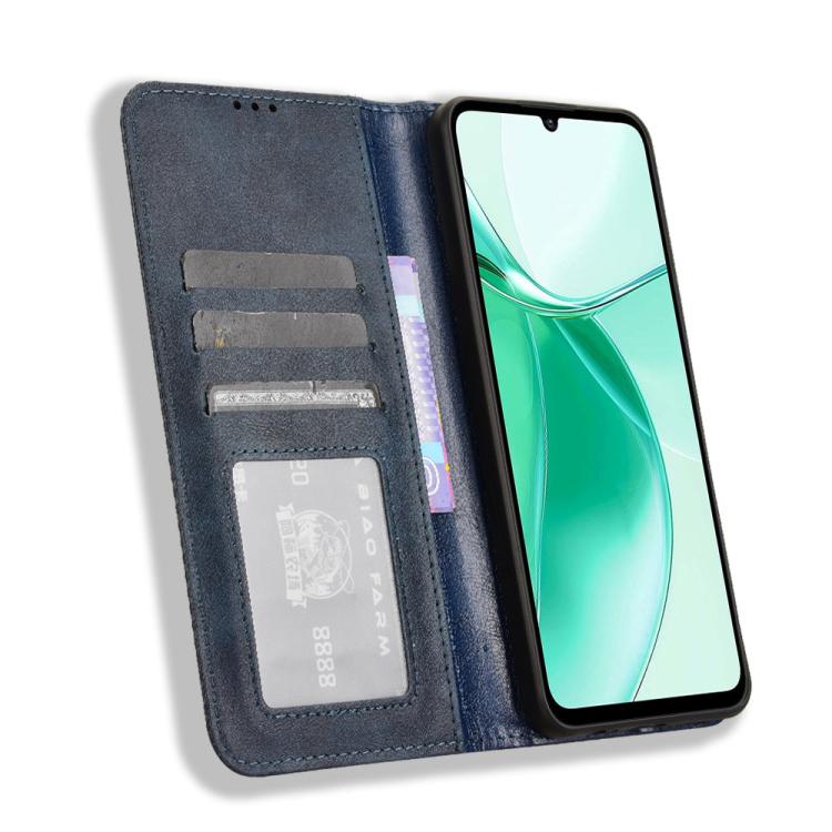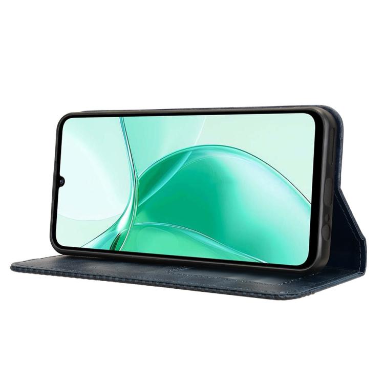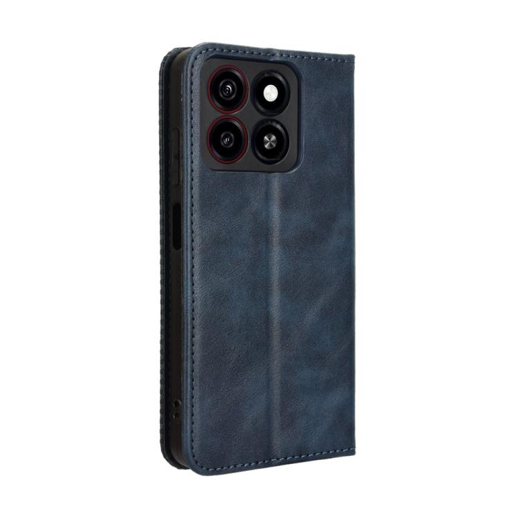 Funda de Cuero para ZTE Blade A35 con Textura Retro y Hebilla Magnética (Azul)