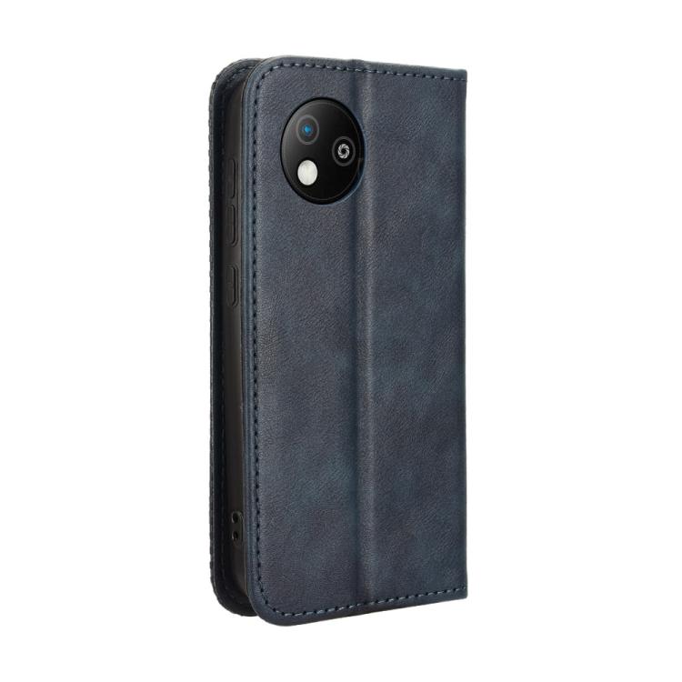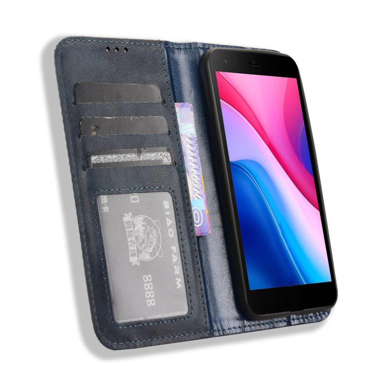 Funda de Cuero para ZTE Blade A35 Lite con Textura Retro y Hebilla Magnética (Azul)