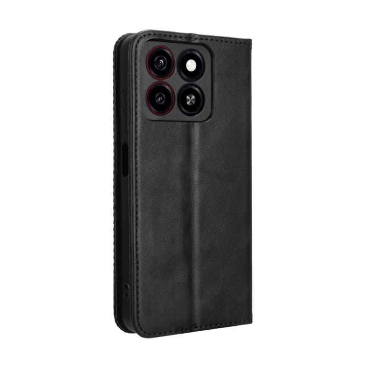 Funda de Cuero para ZTE Blade A35 con Textura Retro y Hebilla Magnética (Negro)