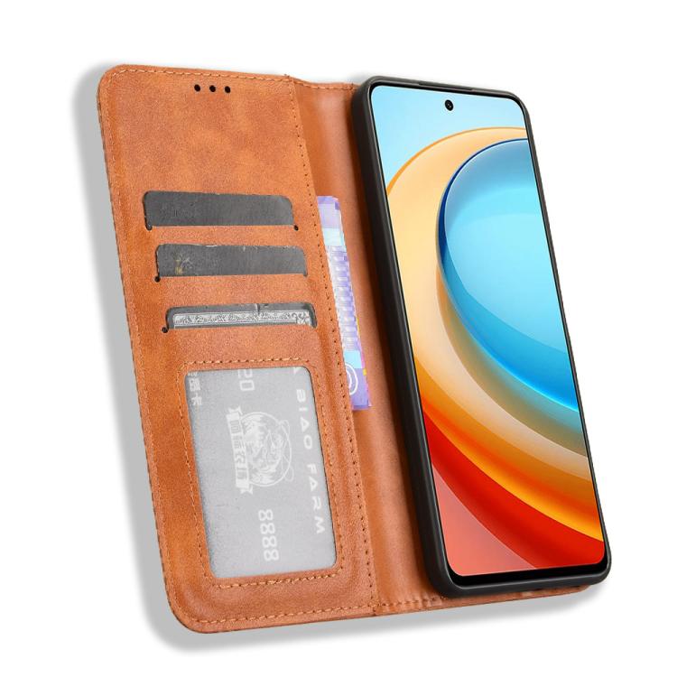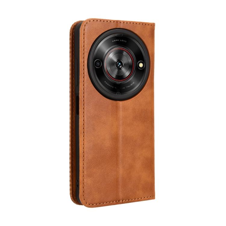 Funda de Cuero para ZTE Blade A75 5G con Textura Retro y Hebilla Magnética (Marrón)