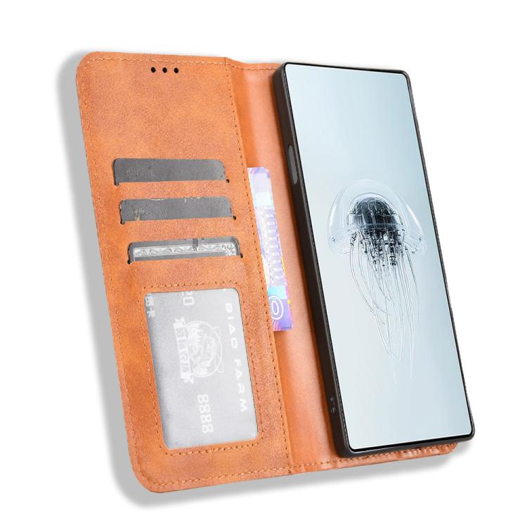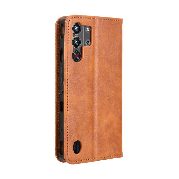 Funda de Cuero ZTE Nubia Red Magic 10 Pro/10 Pro+ Textura Retro Hebilla Magnética (Marrón)