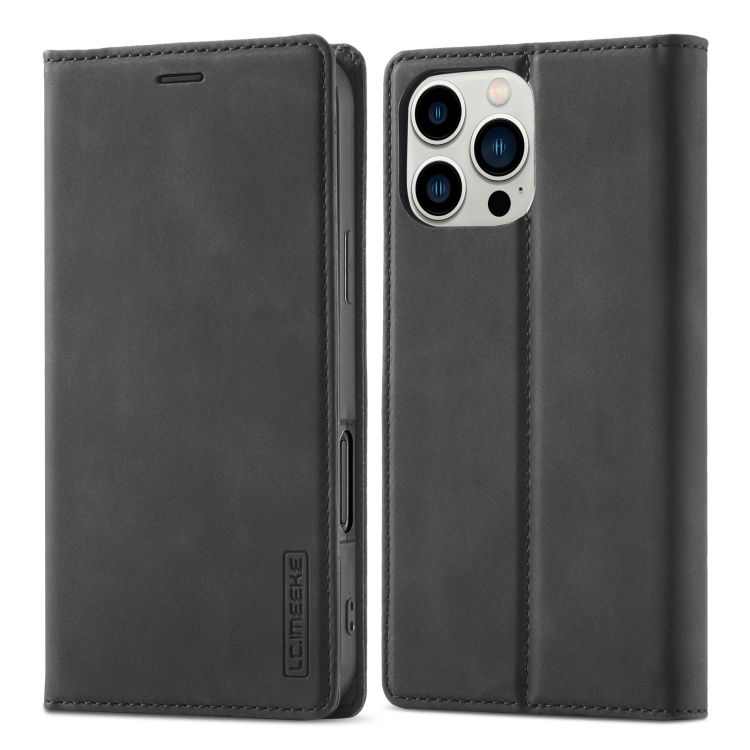Funda de Cuero de Microfibra Lc.Imeeke para iPhone 16 Pro con Magnetismo Fuerte (Negra)